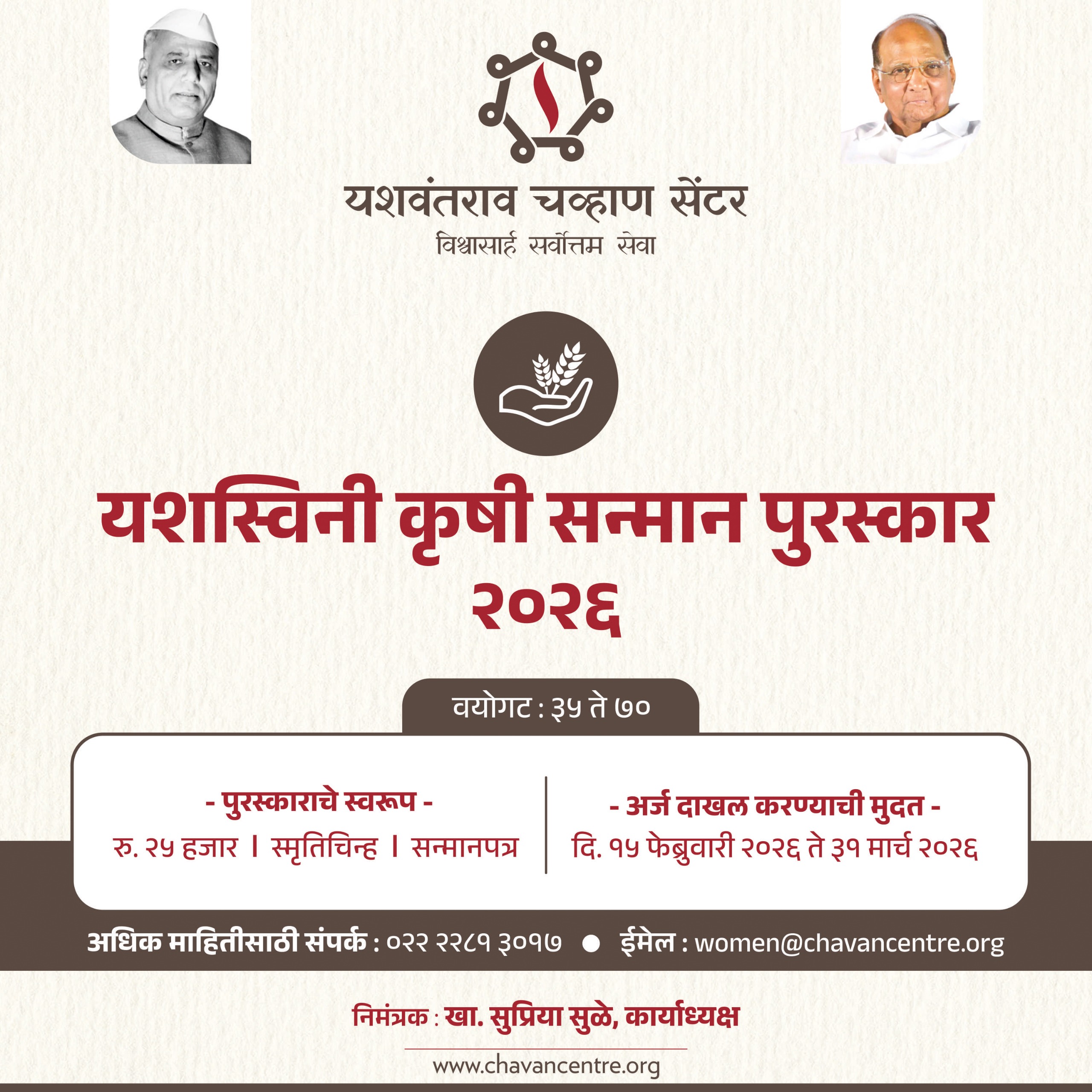 या सर्व पुरस्कारांसाठी दि. १५ फेब्रुवारी पासून अर्ज मागविण्यात येणार असून याची अंतिम तारीख ३१ मार्च २०२६ आहे.