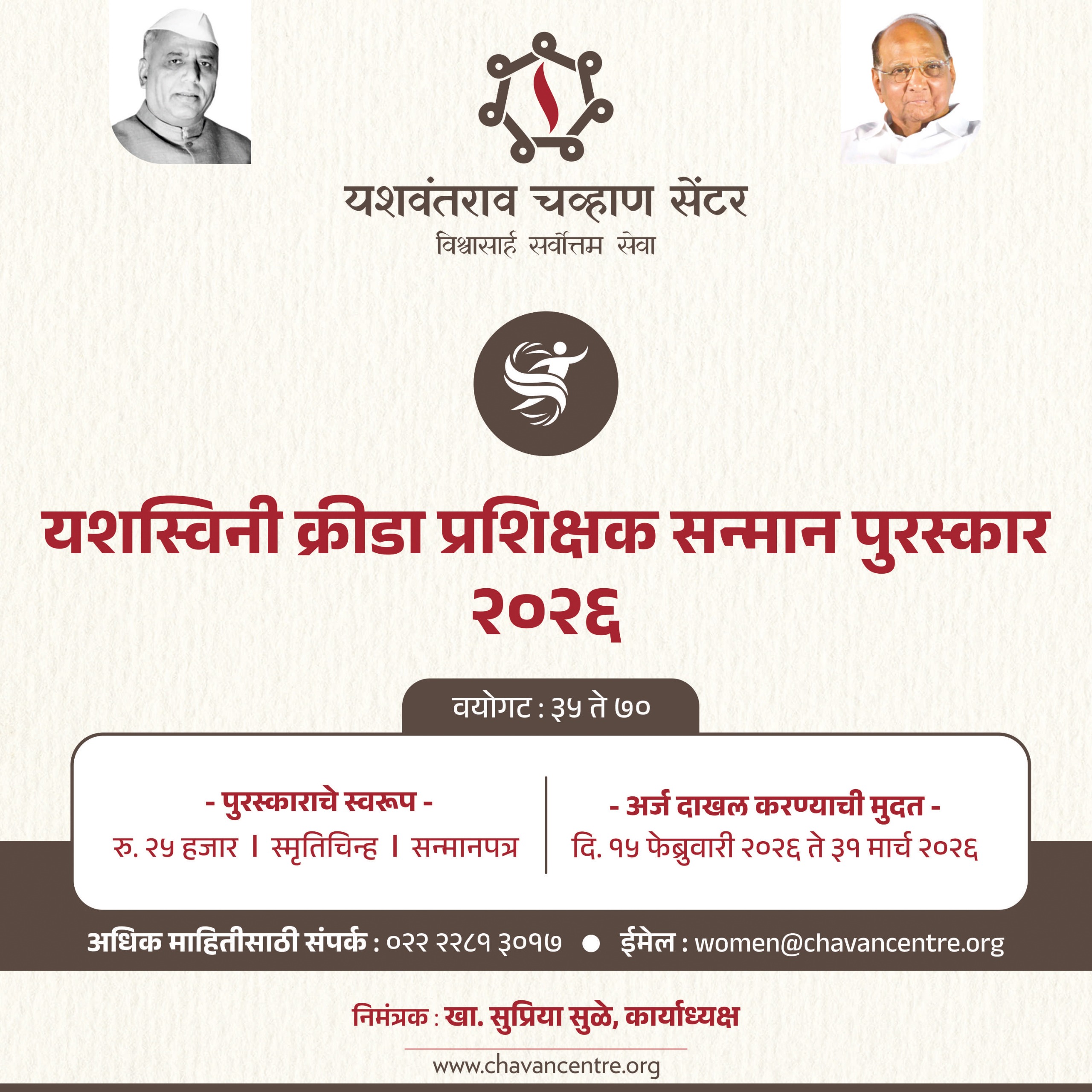यशस्विनी क्रीडा प्रशिक्षक सन्मान २०२६