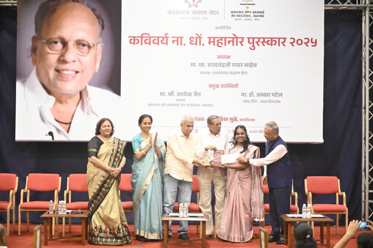 हीनाकौसर खान यांना यशवंतराव चव्हाण सेंटर आणि जैन फाऊंडेशनचा ‘कविवर्य ना. धों. महानोर साहित्य पुरस्कार” देताना आम्हाला अतिशय आनंद होत आहे.