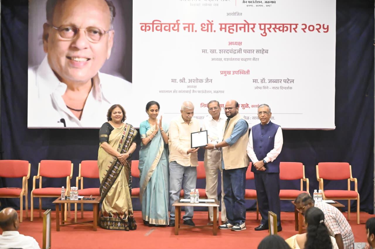 वैभव देशमुख यांना यशवंतराव चव्हाण सेंटर आणि जैन फाऊंडेशनचा ‘कविवर्य ना. धों. महानोर साहित्य पुरस्कार” देताना आम्हाला अतिशय आनंद होत आहे.