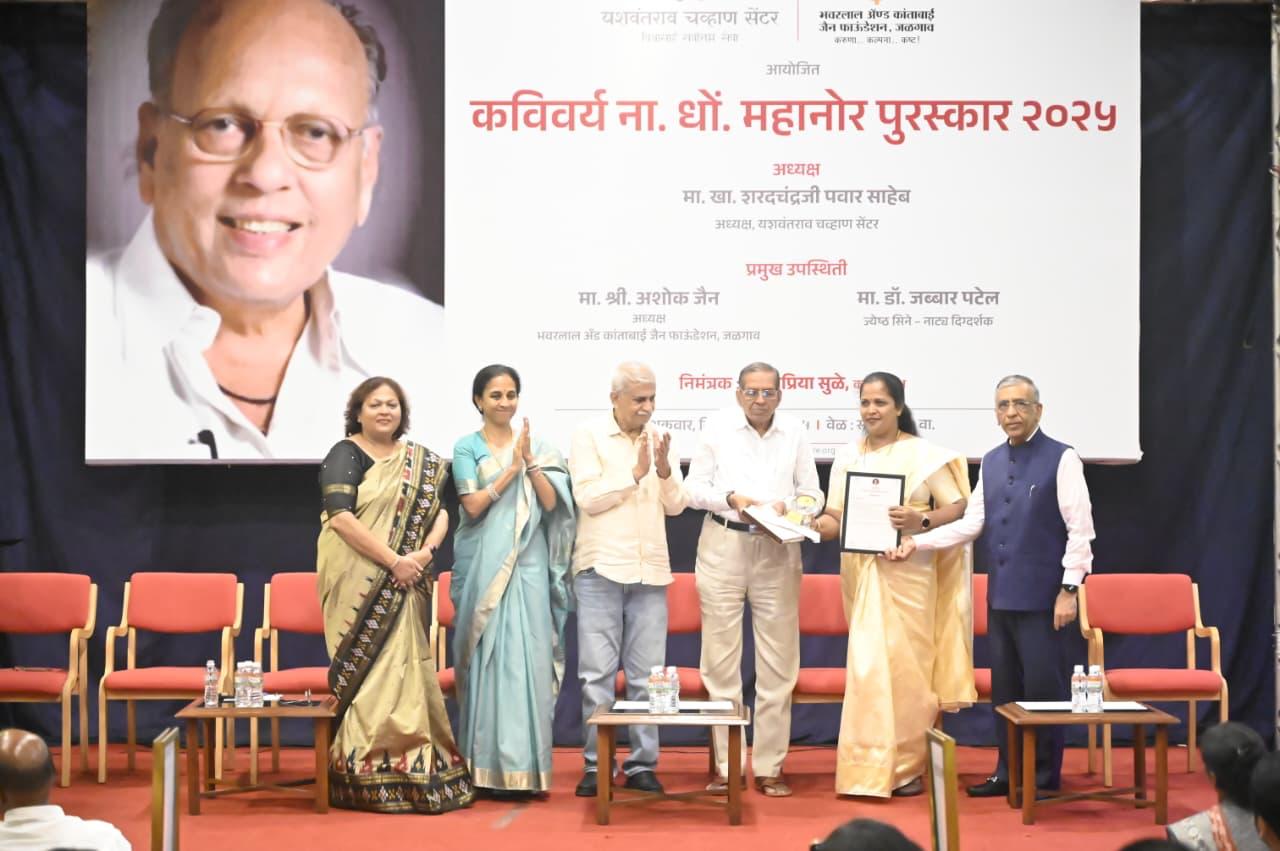 साधना वर्तक यांना यशवंतराव चव्हाण सेंटर आणि जैन फाऊंडेशनचा ‘कविवर्य ना. धों. महानोर शेती-पाणी पुरस्कार” देताना आम्हाला अतिशय आनंद होत आहे.