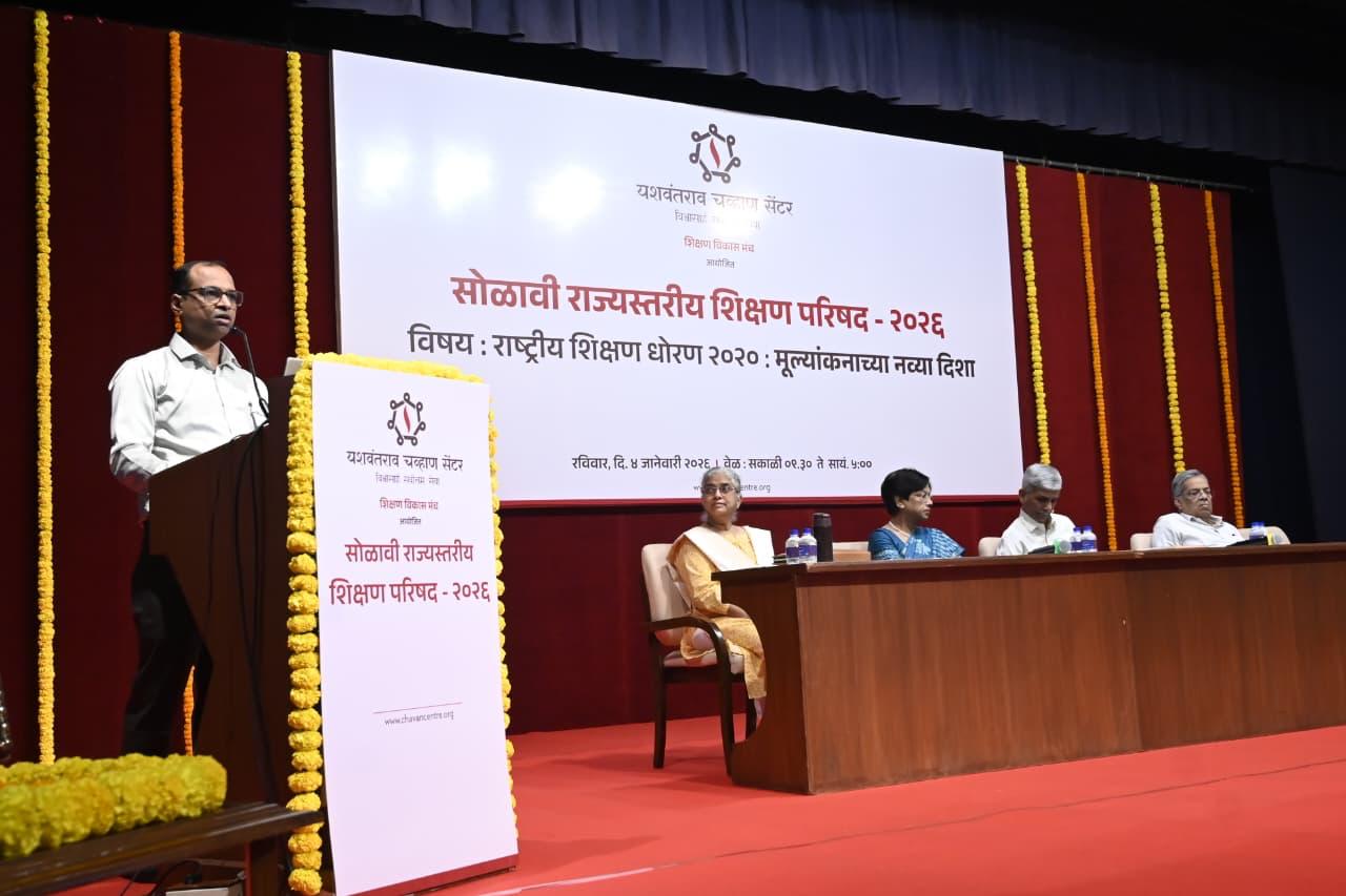 मुंबई : राष्ट्रीय शिक्षण धोरण २०२० अंतर्गत शिक्षणातील मूल्यांकन पद्धतींमध्ये होत असलेल्या बदलांचा सर्वंकष आढावा घेण्यासाठी आयोजित करण्यात आलेली सोळावी राज्यस्तरीय शिक्षण परिषद दिनांक ४ जानेवारी २०२६ रोजी यशवंतराव चव्हाण सेंटर, मुंबई येथे अत्यंत उत्साहपूर्ण वातावरणात पार पडली. शिक्षण विकास मंच आणि यशवंतराव चव्हाण सेंटर यांनी आयोजित केलेल्या या परिषदेला राज्यभरातून उस्फूर्त प्रतिसाद लाभला.