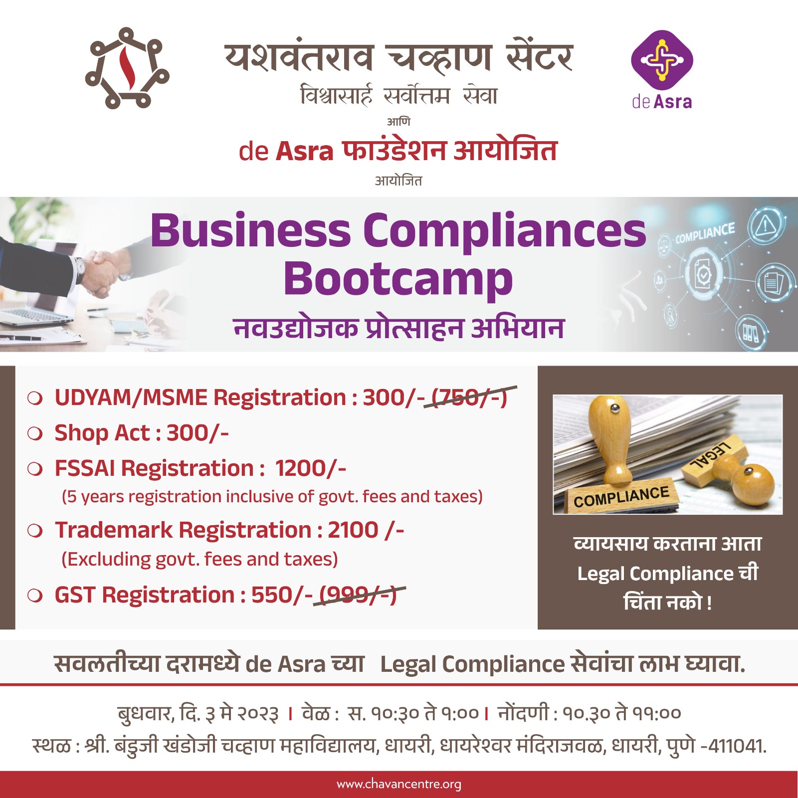 व्यावसायिकांना या विविध परवान्यांची नितांत गरज असते. हे सर्व परवाने यशवंतराव चव्हाण सेंटर आणि दे आसरा फाउंडेशनच्या माध्यमातून सुलभपणे मिळवता येतील. त्याचबरोबर छोट्या उद्योजकांना यासाठी खास सवलतही देण्यात येणार आहे.